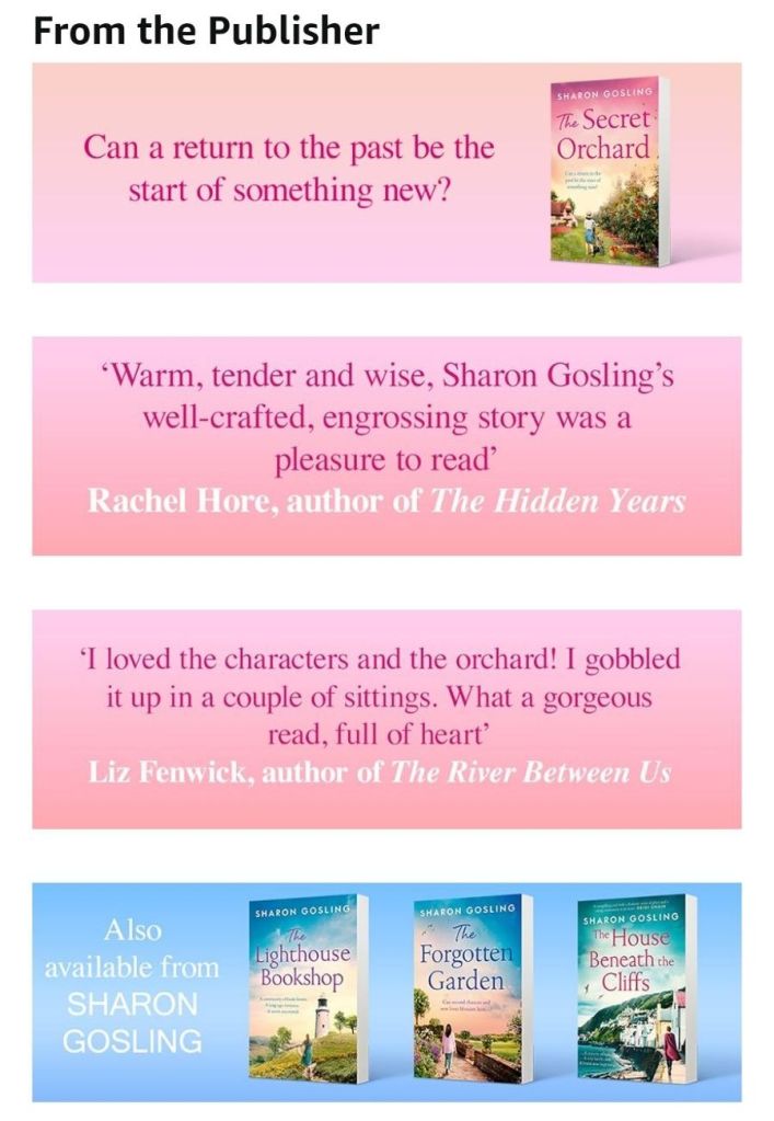 My Review: I had an enjoyable time reading The Secret Orchard by Sharon Gosling. It’s well written, paced just right and held my attention, I read it in three sittings.